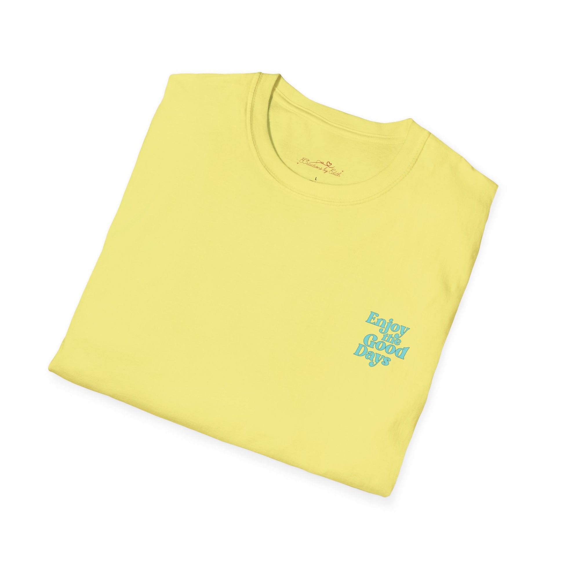 Our unisex softstyle t-shirt embodies comfort and style, making it an essential addition to any casual wardrobe. Featuring a classic fit and cheerful message, 'Enjoy the Good Days', this tee radiates positivity and is perfect for everyday wear. It's versatile enough to be paired with jeans for a laid-back look or dressed up for more formal occasions. Ideal for individuals who love expressing their upbeat personality, this t-shirt is a fantastic gift for birthdays, holidays, or just to brighten someone's day. The breathable fabric promises all-day comfort, making it suitable for both work and leisure activities! Embrace the good vibes and make this your go-to piece for any outing.